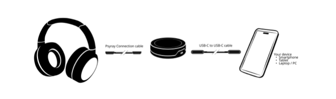 - Use the USB-C cable to connect the pod to the computer, smartphone, or tablet running the Psyray App.